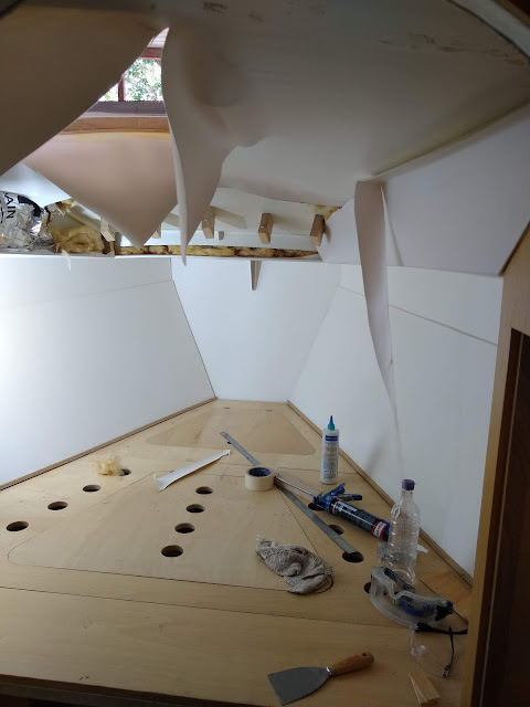 Inicie los trabajos en el interior en plena pandemia, apenas se declaró aqui en Argentina, y hoy 3 años despues, sigo teniendo detalles a terminar. Los interiores son sin dudas el mayor trabajo dentro de un barco. Logicamente mi idea de la terminación que quería en los interiores era de un nivel casi profesional, o nivel astillero. Obviamente es muy dificil lograrlo ya que uno no es carpintero y todo lo que hago lo hago con ideas propias, teniendo poca idea de como estan hechos los interiores en otros veleros.